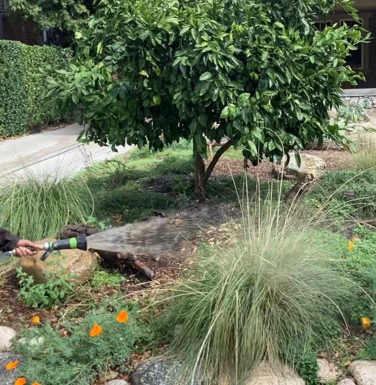 We spray your whole landscape, which means we spray the entire plant canopy (or as much as is accessible) and drench the soil. Our compost tea is odorless and does not leave residue or stains on hard-scapes.y